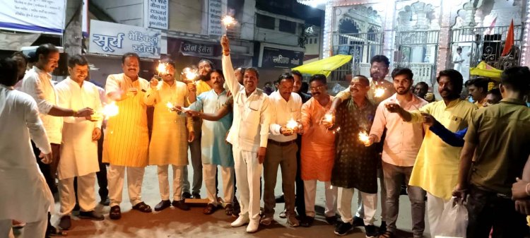 शुक्रवार शाम को आयोजित कार्यक्रम के दौरान भाजपाइयों ने हाथ में फुलझड़ी लेकर हर घर मोदी, जय-जय मोदी के नारे लगाए।