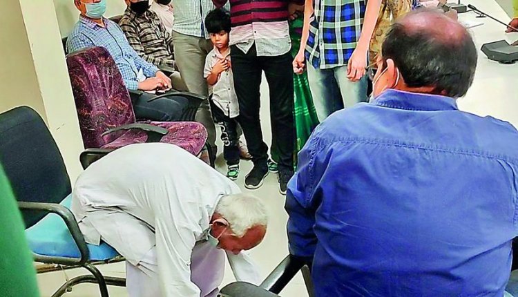 बुजुर्गों को अधिकारियों के पैर छूकर लगाना पड़ रही गुहार