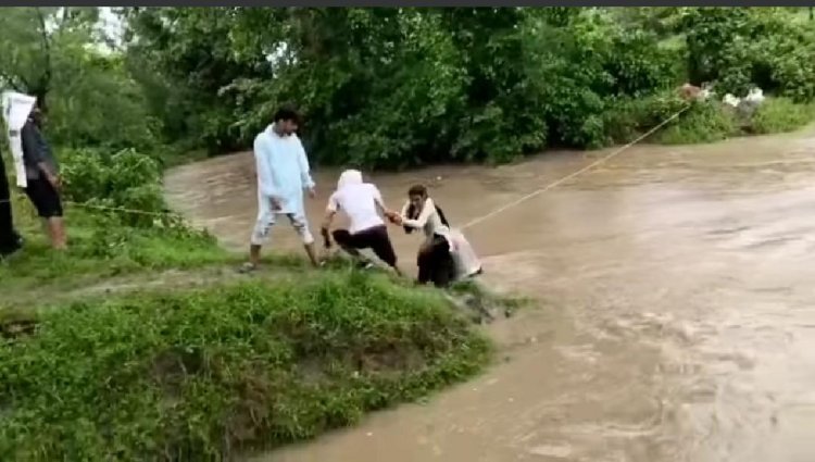 पिछले तीन दिन से जारी बारिश के कारण अब जनजीवन अस्त-व्यस्त होता नजर आ रहा है। नदी और नाले उफान पर हैं। मप्र के शाजापुर जिले के ग्रामीण क्षेत्रों में कई जगह पर पुल और पुलिया तक नहीं है। ऐसे में ग्रामीणों को जान जोखिम में डालकर जुगाड़ के सहारे नदी पार करना पड़ रही है।