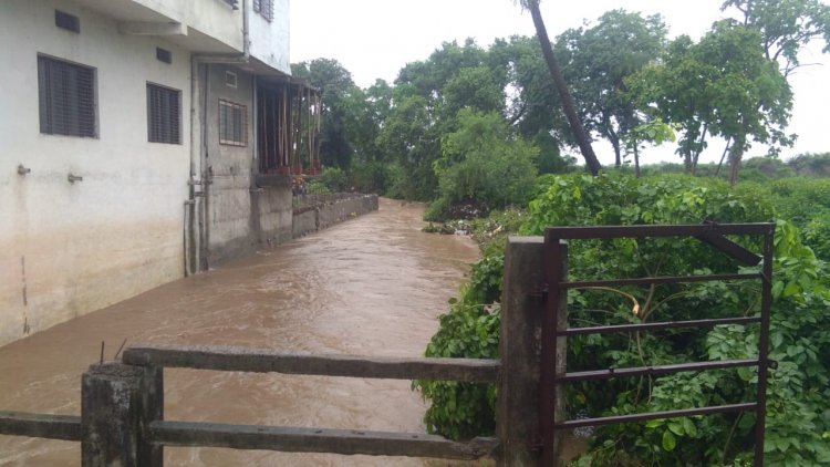 एबी रोड पर महात्मा गांधी कॉन्वेंट स्कूल के सामने बनी उमिया धाम कॉलोनी में बारिश के कारण मुसीबत होने लगी है। यहां प्लॉट काटने के लिए बरसो पुराने नाले को डायवर्ट कर बाउंड्रीवॉल बना दी गई। इससे तेज बारिश में उफान पर आए नाले के पानी को निकलने के लिए जगह नहीं मिल रही। ऐसे में यह पानी भराव की हुई जमीन को कमजोर कर रहा है, साथ ही बाढ़ की स्थिति में तबाही मचा सकता है।