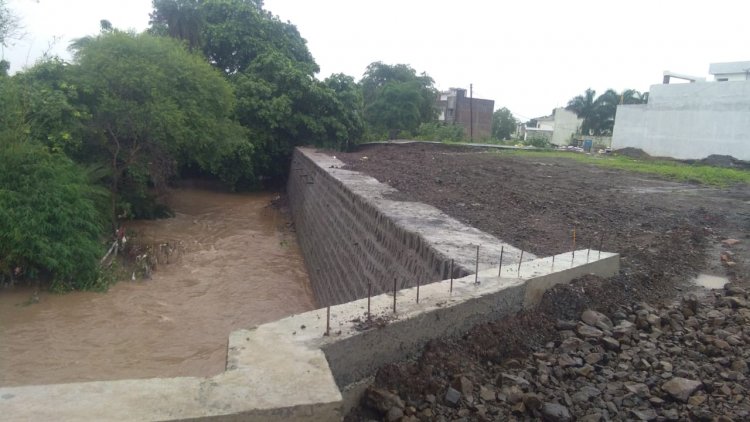 इस तरह नाले की बाउंड्रीवॉल बनाकर दूसरी तरफ भराव कर दिया गया है।