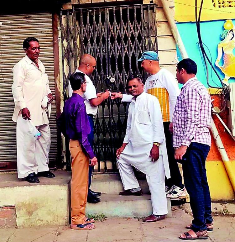 बैंक शाखा को सील करते तहसीलदार व अमला।